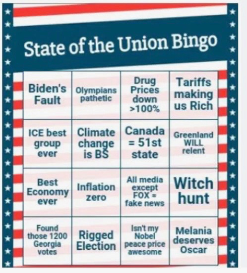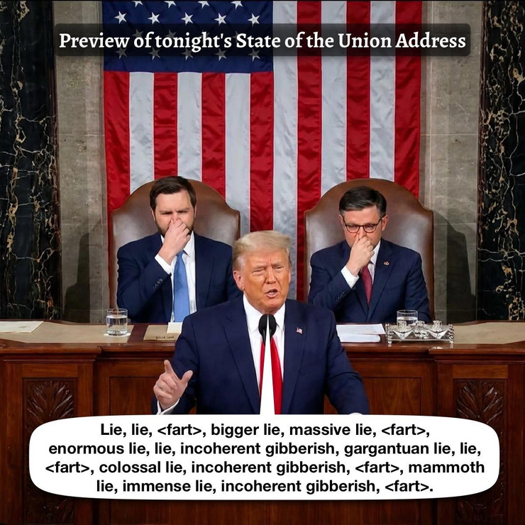 trumps state of the union speech-" The country is a horrible mess, a real dumpster fire, economy is in the ditch, prices are going through the roof, Mexicans are streaming through the border raping and killing everybody, and it's all Bidens fault. I ...