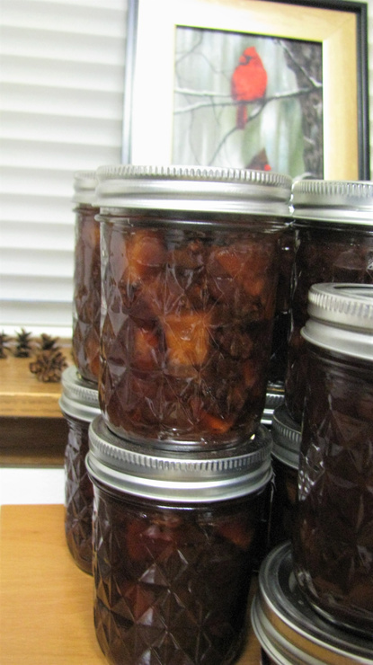 Canning is a major production. Dashed out at 6 p.m. for more jars. Finished 21 jars, washed dishes and collapsed at 9:00. Today I'll make labels.