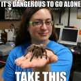 I tend to be the one who likes the critters most other people think of as 'creepy'. I worked at a reptile zoo for nearly a decade, and now my research focuses mainly on arachnids. I share my home with 2 parrots, 13 snakes, 1 gecko, and around 80-90 arachnids (mostly tarantulas), and am usually referred to as the 'crazy spider lady'!