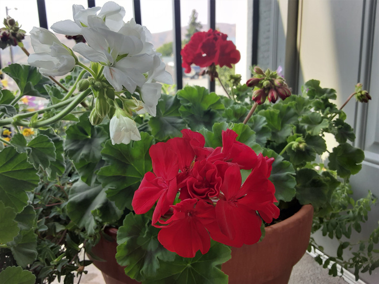 My south-facing deck is protected by a roof with walls on three sides. Geraniums bloom into November.