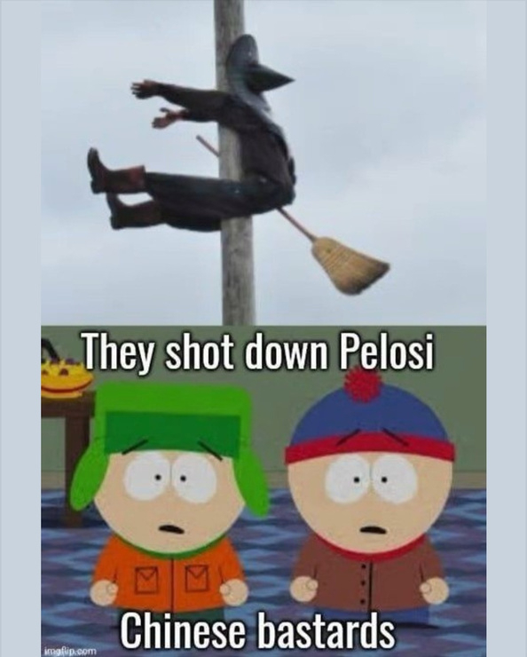 Easy target. Pelosi was flying on her broom while drunk