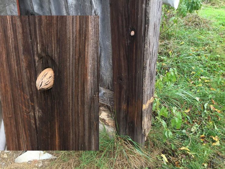 earlier today I noticed a nut. a black walnut. it had been secreted in a failing wood joint, yet very exposed. a very hasty or perhaps interrupted stashing...presumably that of a squirrel. So, i have no claim to the treasure. i have no need of it. should i leave it, or move it? just to raise the squirrel aggravation factor of course. is that bad karma?