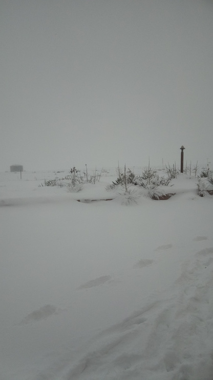 We have gotten about 18 inches of snow in the last 24 hours. I took a photo of the island in the middle of the driveway. Have been busy, to say the least.