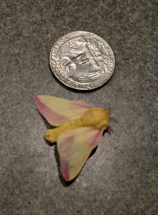 Pretty moths from last night: rosy maple moth, lemon plais, furcula, and one of the prominents, but I'm not sure which species. Gotta dig out the Covell's for an ID on that one.