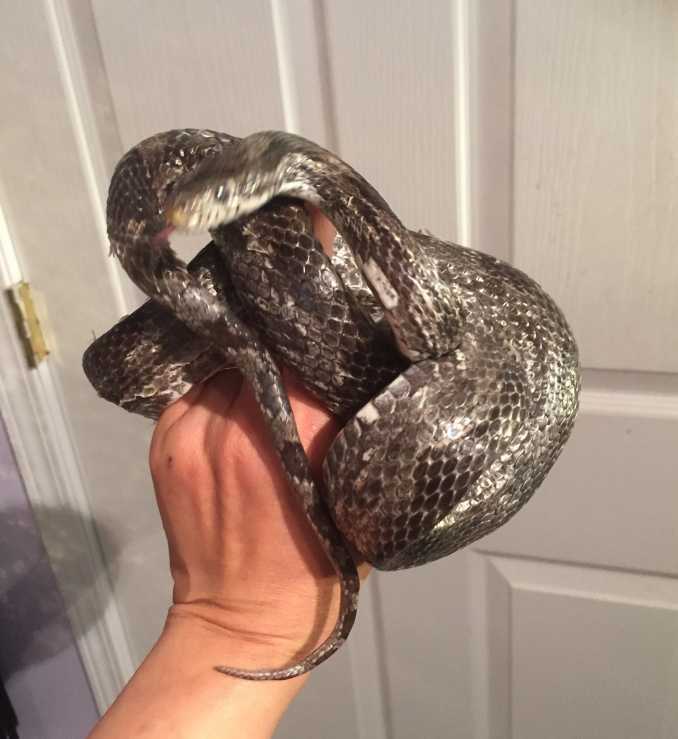 Part of the fun of being owned by reptiles. Shedding issues. This is Riddick, who is actually a girl but was adopted out to us as a boy. She is a anerythristic corn snake, meaning she lacks any red pigment. The rescue didn’t know how to care for ...