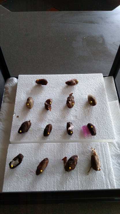 I heard scratchy, rustling noises today and realized that it's coming from my Actias dubernardi cocoons. They're wriggling and writhing with life. I can't wait until they emerge as huge, beautiful moths. They're due to eclose within the next 2 ...