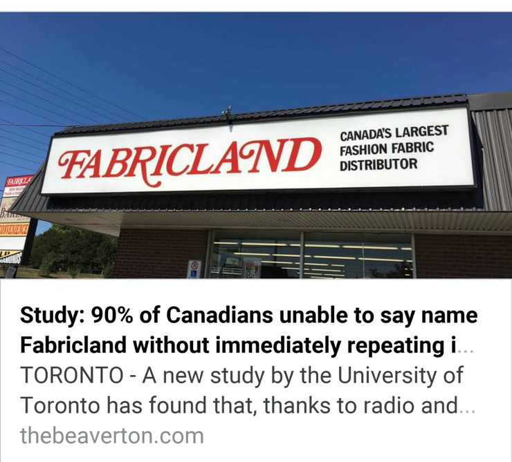 Ontario for sure. How about other provinces? Study: 90% of Canadians unable to say name Fabricland without immediately repeating it faster and louder (yes, this is both satire and also true.) ROFL