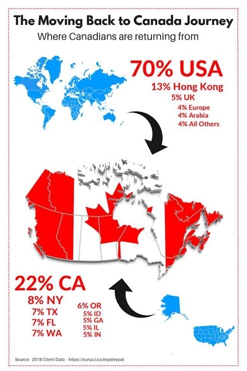 Canadians who have been living abroad are moving back home and the number one country they are leaving in droves is the USofA. I wonder why?