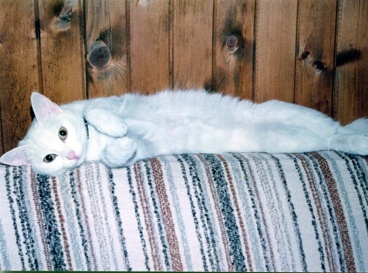 My first cat as a child was all white, and she was such a sweetie, and the most well-behaved cat I've ever had. This is her when she was old and quite high from her Christmas presents.