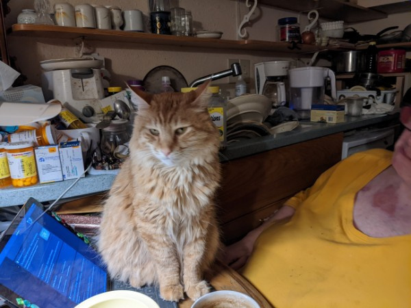 When I first met Kate, I knew she had a cat. This cat was her buddy, so I gave it as much room as it had before I was there. It would eat on the table with us. Kind of funny as Kate would give it a plate of food just like us. I figured the cat was her buddy and if I wanted to be a part of the group I would have to get in line behind the cat. I told Kate that we could have no more than ten cats as I needed to be in the top ten at some time, did not matter where in the top ten, just somewhere. I have never figured out where I am in the bunch, but I must have done alright as we have been together 32 years. We now have six cats and Kate is looking hard at two more who need a home.