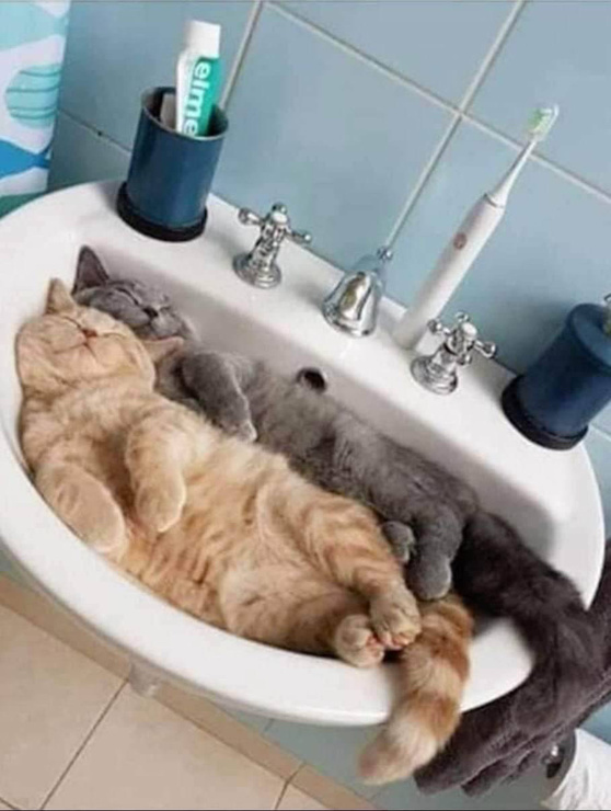 I had a cat that liked to sleep in the sink. I accidentally turned the water on her a few too many times. At least she started getting out of the way when I was nearby.