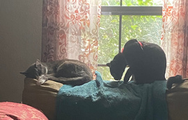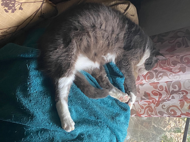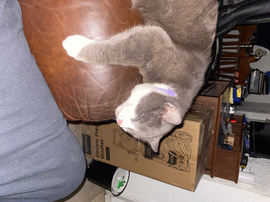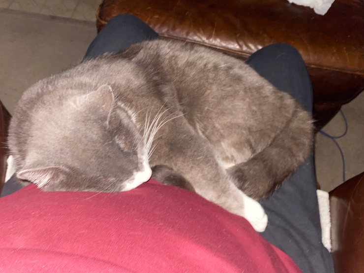 Posted by LaurenIt would be warmer for us both if he'd get on my lap, but it has to be his idea - though he still likes to stay close.