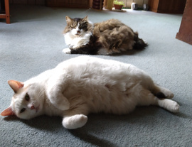 Nala & Leo relaxing on the floor...Pixie demands the bed, which is fine with me as long as she makes it when she gets off.
