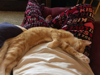 Posted by LaurenIt would be warmer for us both if he'd get on my lap, but it has to be his idea - though he still likes to stay close.
