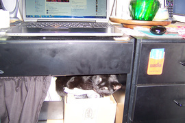Posted by LaurenIt would be warmer for us both if he'd get on my lap, but it has to be his idea - though he still likes to stay close.
