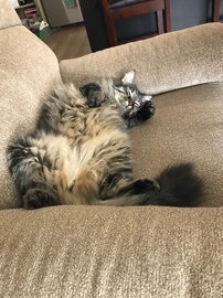 Posted by LaurenIt would be warmer for us both if he'd get on my lap, but it has to be his idea - though he still likes to stay close.