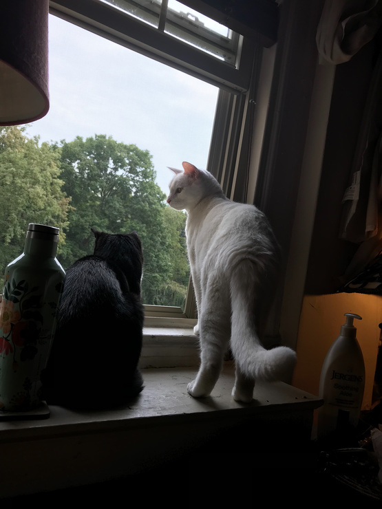 She is back to sitting in her window.