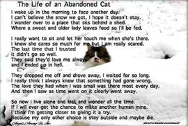 There are at least two ways to react to this. One is to get choked up about this account of something that happens all too often, then go back to whatever you were doing. However, it would be more productive to actually do something about it. Rescue organizations desperately need foster homes. If cats need rescuing but have nowhere to go, they don't get rescued, they die. It's just that simple. You can find a rescue organization that very much needs you at www.nokillnetwork.org.