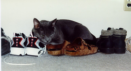 This was Nigel. Back in 2000, I was livign in Loc Angeles and my roommate left him with me when she went back to Japan. My new roommate and the cat didn't get along. So, my old roommate arranged to fly him to Japan to be with her.