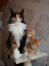 I think the momma is a Maine Coon. These cats have the most interesting regal look.🥰