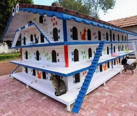 I've seen a lot of fancy bird houses, but this really takes the cake. Somebody put a lot of work into this. Really cool!