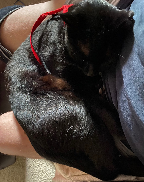 Posted by LaurenIt would be warmer for us both if he'd get on my lap, but it has to be his idea - though he still likes to stay close.