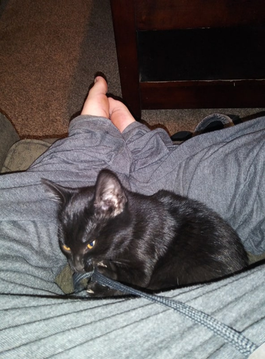 Posted by LaurenIt would be warmer for us both if he'd get on my lap, but it has to be his idea - though he still likes to stay close.