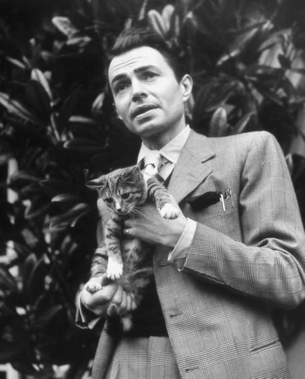 Actor and his kitten: JAMES MASON 1948.