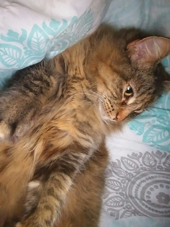 Gah, my heart! ? I just got home from work and crashed into bed because I had a terrible day. He cuddled right up to me and reached for my phone when I took his picture. I think he knows.