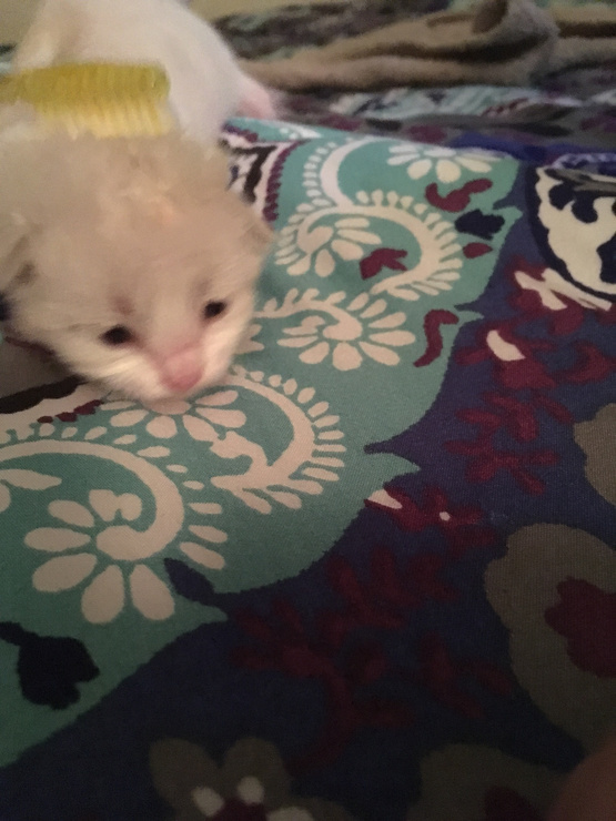 My lady friend found an abandoned newborn last week. She’s been doing a wonderful job bottle feeding and otherwise caring for the little beast. Well, yesterday, somebody’s eyes opened.