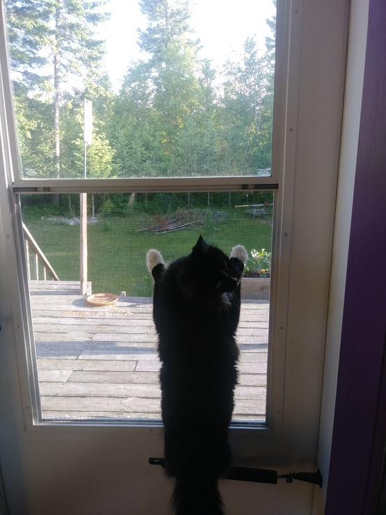 I've been taking turns with going outside with Nala & Pixie. Can you see a bit of jealousy in Nala's face in the window? But... 1 cat on a leash at a time is challenging enough ;)