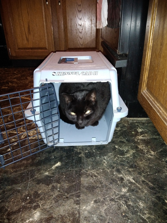 Headed to the vet. With my OTHER cat. I think this girl is just tired of my shit and wants to get outta here! (There's normally much tears and blood to get this one in the carrier LOL)