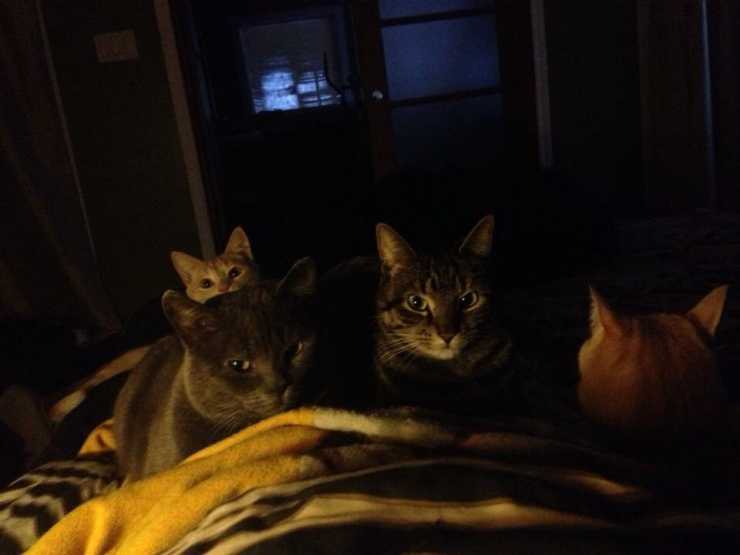 A creepy photo I found while going through my Facebook photos looking for something entirely different. This makes me think of a horror movie. The Night of the Staring Cats.