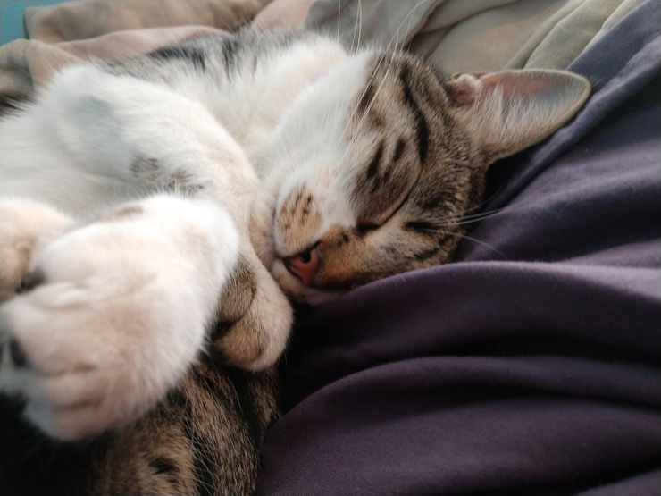 Sipping coffee and chilling with this guy. Love it when he tucks his paws in. domino studious
