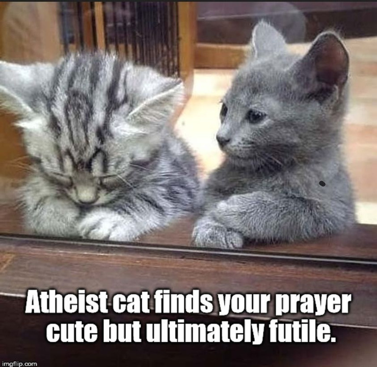 Atheist cat finds...
