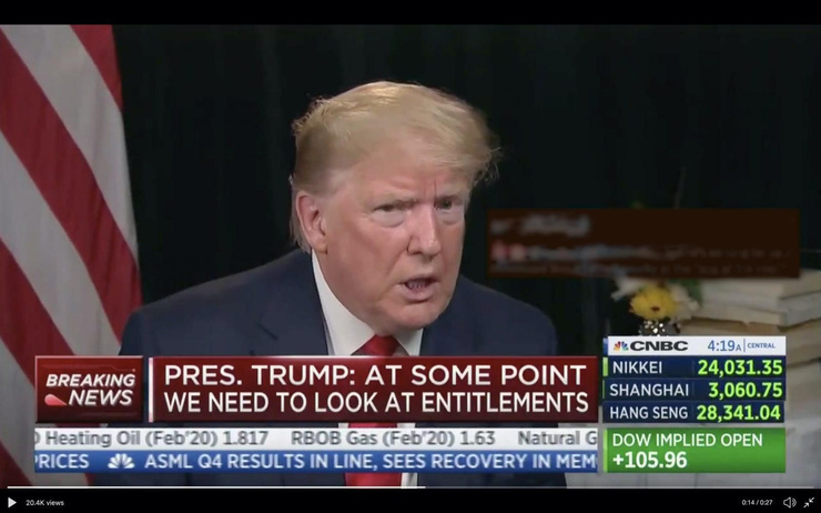 Trump Says He’ll Consider Cuts to Social Security and Medicare While much of the nation was focused on Donald Trump’s impeachment trial, President Trump gave an interview to CNBC in Davos, Switzerland, declaring his ...