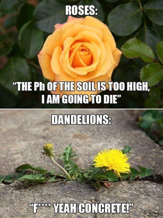 Dandelions come up through the cracks where life isn’t always expected; they’re hard to take down.