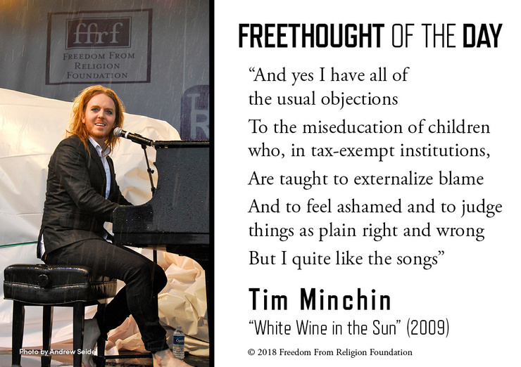 Today's freethought comes from a writer/musician that Aussies and Brits know; most Americans never heard of him. Tim Minchin?