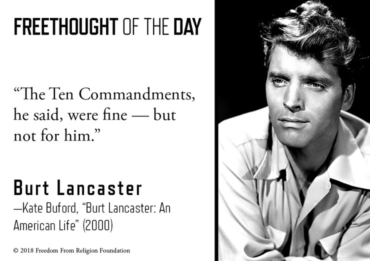 Our Freethought for the day comes from Burt Lancaster; A great actor - who passed away in 1994;