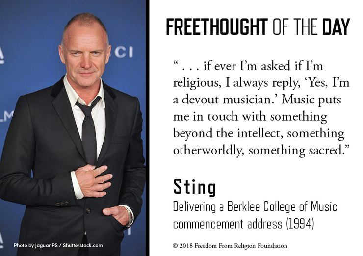 Gordon Matthew Thomas Sumner CBE (born 2 October 1951), known as Sting is agnostic;