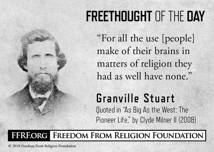 Your/my "Freethought of the day" comes from a U.S. Pioneer; Here's a little background on Granville Stuart;
