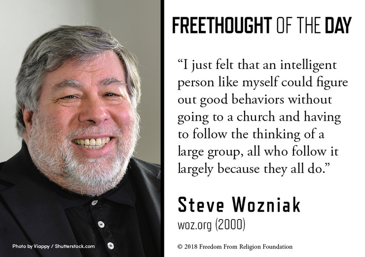 No disrespect, but there's no love lost on this man... Even though he's famous as the co-founder - along with Steve Jobs - of Apple But a very logical "freethought" for you! I recommend you read the book about both of them... Here's a little ...