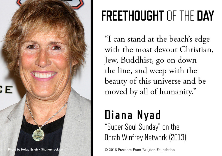 A woman made famous for her incredible swim! And she's agnostic! Diana Nyad!