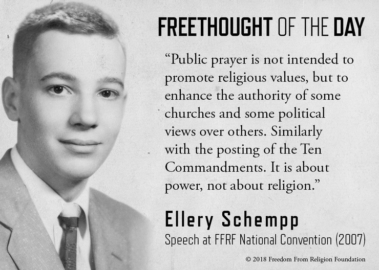 A comment by Ellery Schempp a still living (born 1940) physicist whose claim to fame was his position as a student in a landmark Supreme Court decision in 1969. Read about it here;