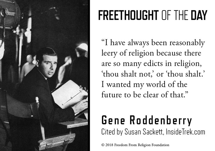 OK...all you "Trekkie" fans...here's a freethought from the producer; Gene Roddenberry; Here's his Wiki biblio as well;
