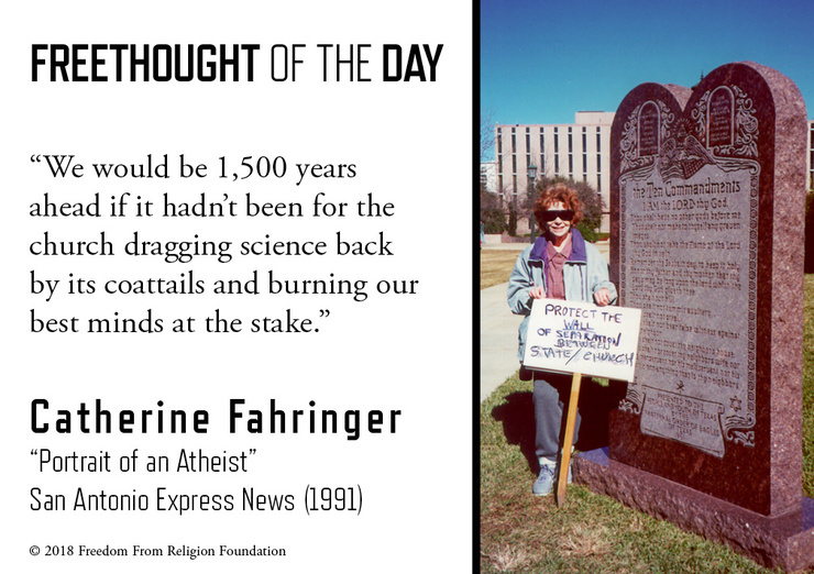 The Freedom from Religion Foundation works as an effective state/church watchdog and voice for freethought (atheism, agnosticism, skepticism).