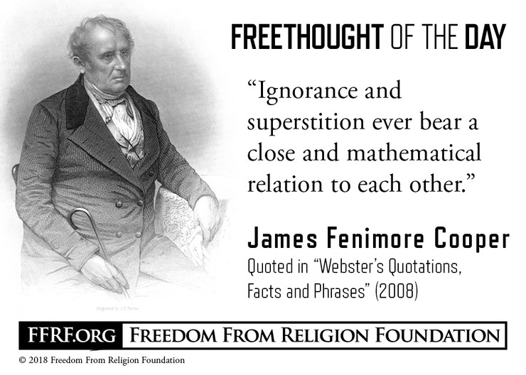 Your/my "Freethought for the day" comes from a man - gone but not forgotten; a VERY outspoken VIP for his time! James Fenimore Cooper!