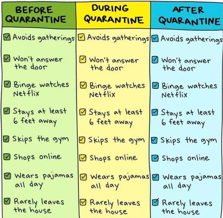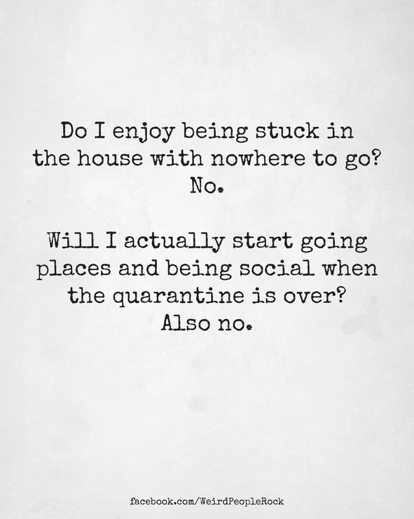(Stolen from Facebook)- When an introvert and an extrovert are quarantined together: