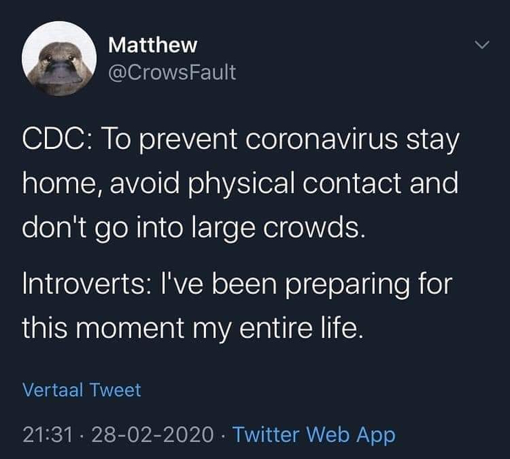 A group for introvert discussions. Feel free to post memes, links, music, anything you like. The only group rule I have is don’t be an ass.