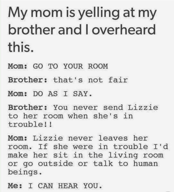 So i entered the introverts chatroom and it was just me in there, on my own. I think someone has a sense of humour.
